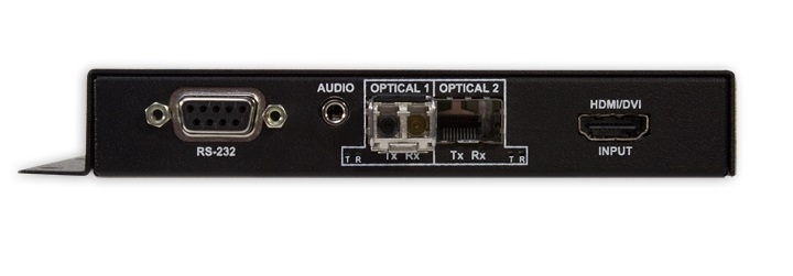 Dual-channel HDMI and DVI interface transmitter with HDCP support over fiber optic line (2 strands), up to 2 km (over multimode fiber optic cable), up to 4 km and 30 km – over single-mode fiber optic cable (includes SFP module for multimode fiber optic patch cord).