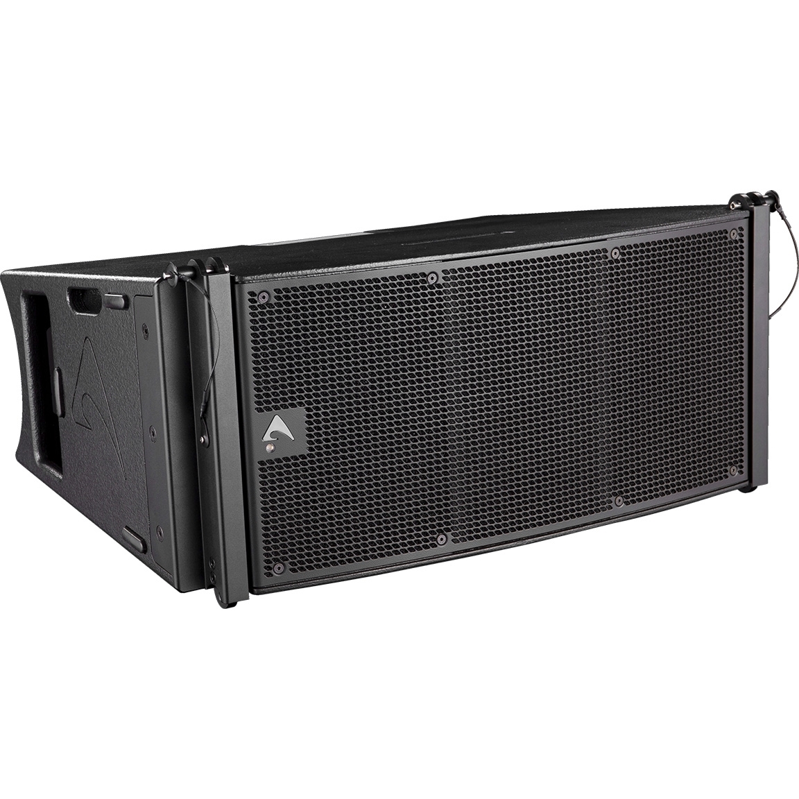 Passive linear array element Axiom AX2010P — a black loudspeaker system with two 10-inch low-frequency drivers and two 1.4-inch high-frequency drivers. RMS power — 850 W (2 × 425 W), impedance 8 + 8 Ω. Frequency range 75 Hz – 18 kHz, coverage angle 110° horizontal and 10° vertical. Enclosure made of 15 mm birch plywood with moisture-resistant coating. Inputs/outputs — 4-pole SpeakON. Weight 38 kg, dimensions 750 × 530 × 340 mm. Can be connected to the SW2150 A subwoofer to form a linear array. Designed for professional stage and concert productions.