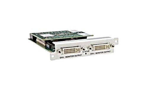 The CM-DVI-I-MON-2OUT monitoring module from tvONE is designed for installation in a CORIOmatrix series matrix switcher chassis and is equipped with two DVI-I output ports, supporting DVI, HDMI, VGA, RGB, and YUV signals with a maximum resolution of up to 1920×1200 (WUXGA). The module is used for monitoring incoming and outgoing video signals within the system.