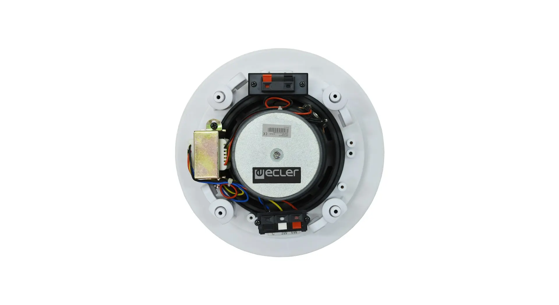 Two-way built-in loudspeaker 5.25” + 0.75”, 20 W – 8 Ω. 100 V taps: 3, 6 W. 96 Hz – 20 kHz (?6 dB). Sensitivity 86 dB. Mounting cutout (D×D): 164×79 mm.