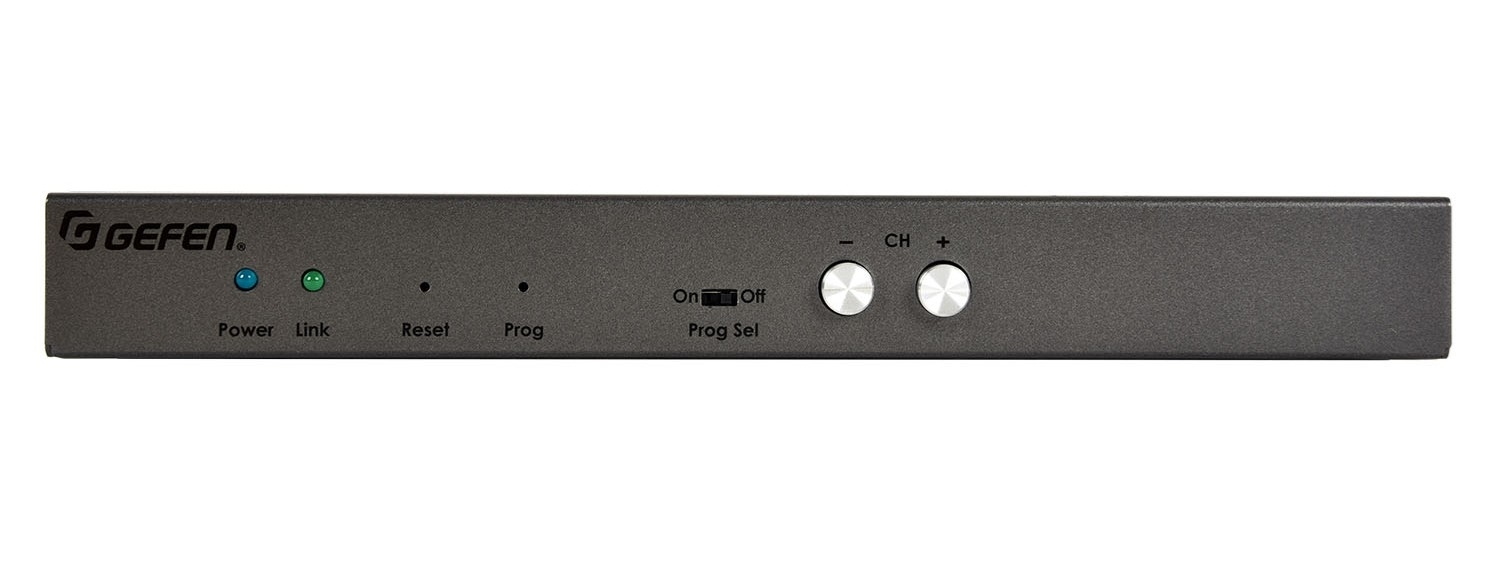 Gefen EXT-ADA-LAN-RX Ethernet Audio, RS-232, and IR Signal Receiver receives bidirectional RS-232 signals, analog audio (3.5 mm miniJack), digital audio (TOSLINK and RCA), and infrared control from 1000BaseT IP networks over Category 5e or 6 cable at distances up to 100 meters. Supports power via PoE (802.3af) or from an external 5 V adapter. Equipped with a built-in two-port Gigabit Ethernet switch, controlled via web interface, Telnet, and UDP. Compatible with EXT-CU-LAN controllers and the virtual matrix system with thousands of devices. Compact housing, half the width of a 19″ rack shelf, features mounting brackets and can be placed behind a display with connection to an external IR module.