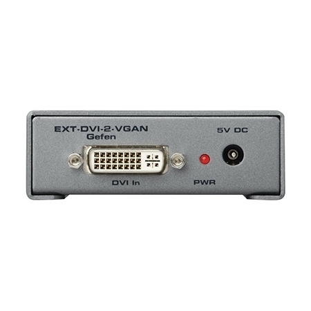 DVI-D to RGBHV Signal Converter EXT-DVI-2-VGA converts a digital DVI video signal into an analog VGA (RGBHV) signal with a maximum resolution of up to 1920×1200 (WUXGA) at 60 Hz. The device supports a bandwidth of up to 165 MHz and allows for EDID source selection for quick integration with displays. The housing is metal, compact, and installation does not require mounting. It supports the HDCP standard and ensures high-quality signal transmission for professional AV systems.