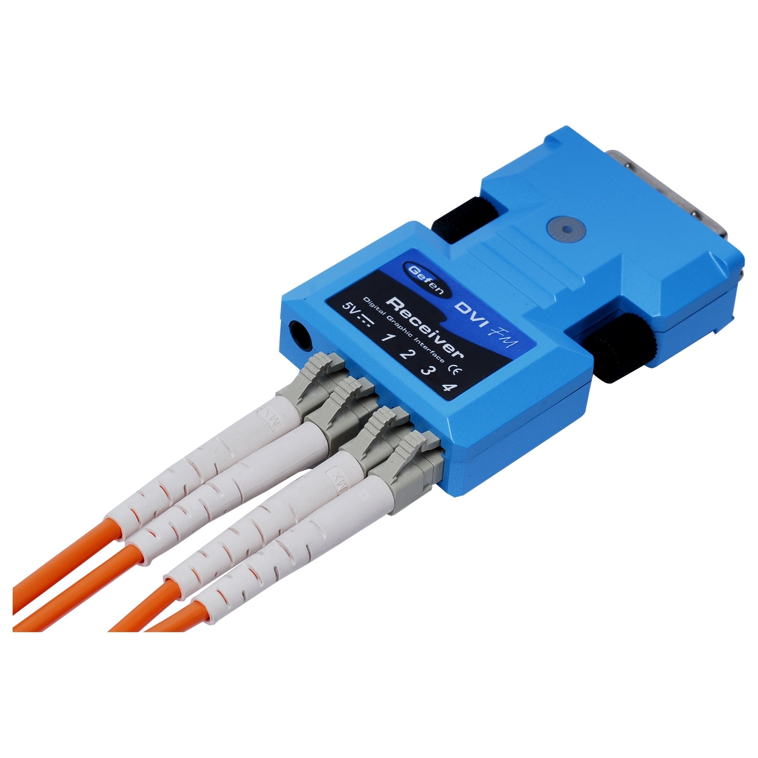 The Gefen EXT-DVI-FMP device kit is designed for transmitting DVI-D Single Link signals over four multimode optical fiber cables with LC connectors. The maximum transmission distance reaches 600 meters when using OM3 or higher grade cables. The device supports a resolution of up to 1080p (1920×1200) with a bandwidth of 165 MHz and ensures stable video signal transmission without loss of quality. The compact, miniature transmitter and receiver are suitable for installation in professional AV systems and conference rooms.