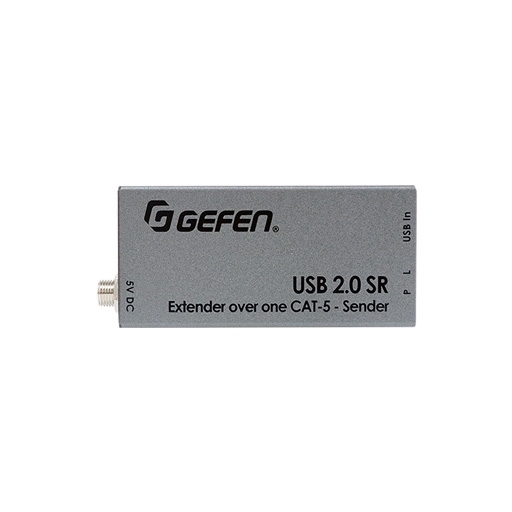 The Gefen EXT-USB2.0-SR device set provides USB 2.0 signal transmission over a single Category 5e or better twisted-pair cable for distances up to 50 meters. It supports speeds up to 480 Mbps, is compatible with USB 1.1 and 2.0, and works with Windows, Mac OS, and Linux operating systems without the need for driver installation. The receiver is equipped with a USB Type-A port with an output current of up to 2 A for powering connected devices and supports the connection of active USB hubs. It is ideally suited for remote connection of peripherals: printers, scanners, webcams, and other USB devices.