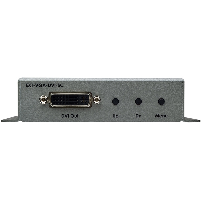 The Gefen EXT-VGA-DVI-SC scaler is designed for converting and scaling an analog VGA (RGBHV) video signal with a resolution of up to 1920×1200 (WUXGA) at 60 Hz into a digital DVI-D signal with a resolution of up to 1080p60. The equipment supports a full-featured on-screen display (OSD) for configuring image parameters, including aspect ratio adjustment and cropping. The device provides EDID compatibility and allows for easy integration into professional multimedia systems. The housing is compact, finished in gray, and powered by 12 V with a range of 6-24 V.