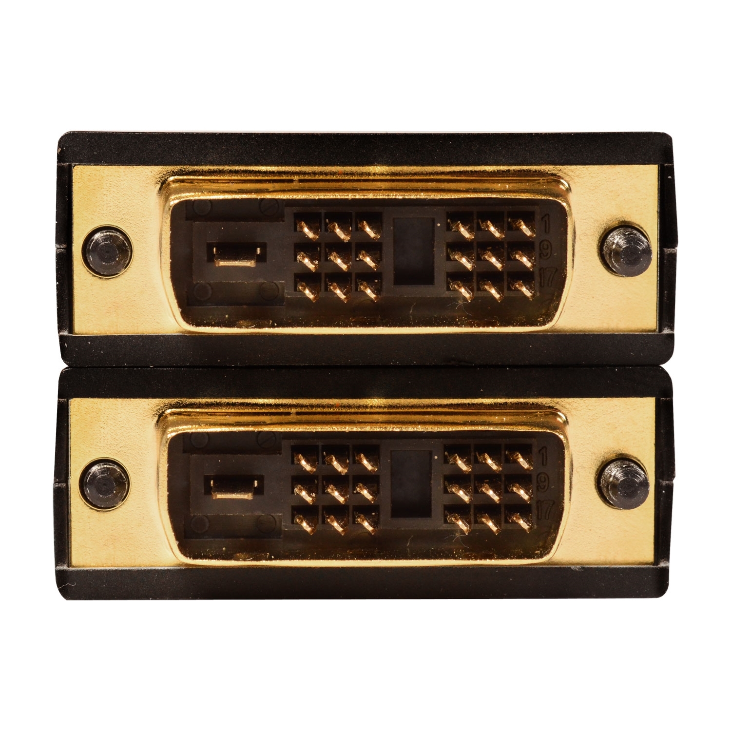 The Gefen GEF-DVI-FM1500 device set is designed for transmitting DVI-D Single Link signals over a single single-mode or multi-mode fiber optic patch cord with SC connectors. It supports resolutions up to 1920×1200 (WUXGA) at 60 Hz, provides galvanic isolation, and offers complete protection from electromagnetic interference. The system is equipped with an automatic EDID emulator and supports DVI 1.0 and DDC2B via a virtual DDC, ensuring correct operation with the source and display. The transmitter module is powered by the signal source or an external power supply. The housings are compact and made of durable metal.