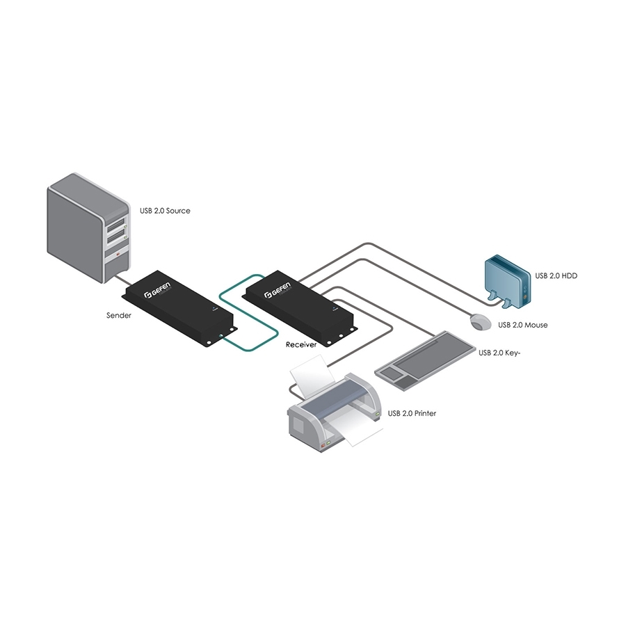 The complete Gefen GTB-USB2.0-4LR-BLK device is designed for transmitting USB 2.0 interface signals over a single Category 5e or 6 twisted pair cable for distances up to 100 meters. The extender provides a speed of up to 480 Mbps and supports USB 1.1 and 2.0 specifications. The receiver module is equipped with a 4-port USB hub, which supports connecting peripheral devices with a current of up to 500 mA; a maximum of 14 devices, including hubs, can be connected. The front module reduces power consumption and can be powered via the USB interface or an external power supply (EXT-PS54AULPN) with threaded locking for a secure connection. The kit is compatible with Mac and PC platforms, supports Plug&Play, and features activity, power, and link indicators. The housing is made of metal, color is black, dimensions are 146 x 63.5 x 31.7 mm.