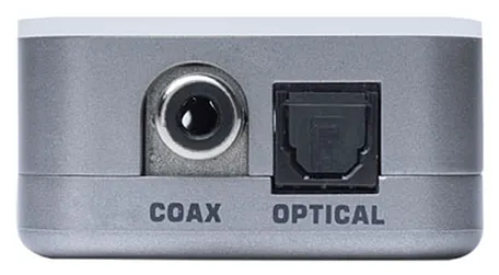 Input: RCA L/R stereo. Outputs: Toslink, RCA (Coax). Supports up to 96 kHz.