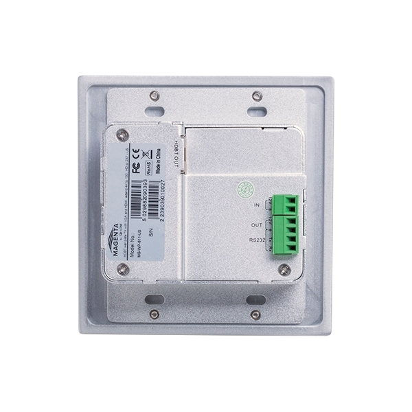 Wall-mounted transmitter/scaler/switcher with automatic signal switching for HDMI 1.4 4Kx2K/60, VGA 1920×1080/60 with audio (3.5 mm miniJack) and RS-232 over CAT5e twisted pair with PoH from the receiver, HDBaseT (can operate in conjunction with CORIO CM-HDBT modules), transmission distance up to 70 m. Compatible receiver: MG-CT-612.