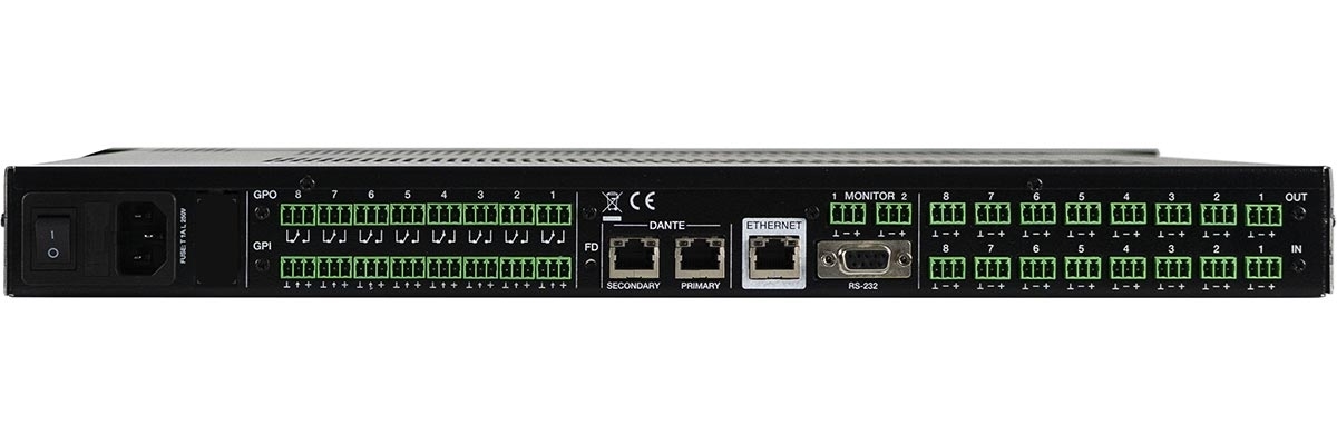 – Control and integration: 8 GPI, 8 GPO, Ethernet port for EclerNet/UCP/TP-NET/WPNET, RS-232 serial port for external controllers.