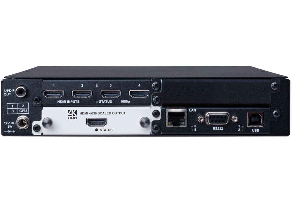 Multiviewer CORIOview inputs 4 × HDMI 1080P, HDMI Ultra HD 4K output, 1 digital audio S/PDIF (RCA) output, one power adapter, control via RS-232/422/485, USB, IP, dedicated software CORIOgrapher, 32 saved configurations.