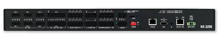 AMX NX-3200 — an integrated programmable control controller providing coordination of multimedia equipment, audio/video conferencing, lighting, climate control systems, and other equipment in large rooms. Features high performance, enhanced security functions, multiple input/output ports, and supports programming in NetLinx. Suitable for conference rooms, educational institutions, hotels, shopping centers, and smart homes.