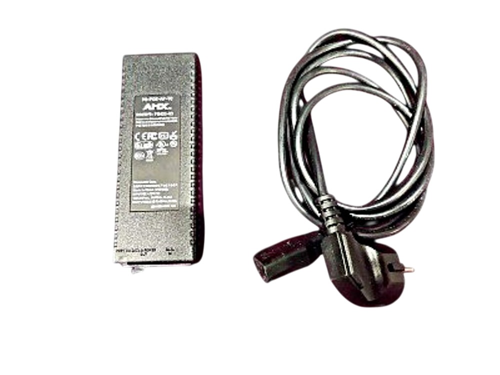 The AMX PS-POE-AF-TC power injector is designed to supply power and transmit data over a single Ethernet cable (PoE) to AMX MODERO X series touch panels with 10.1″, 7″, and 4.3″ diagonals. It complies with the IEEE802.3af standard and provides up to 15 W of output power, simplifying installation and reducing the number of cables.