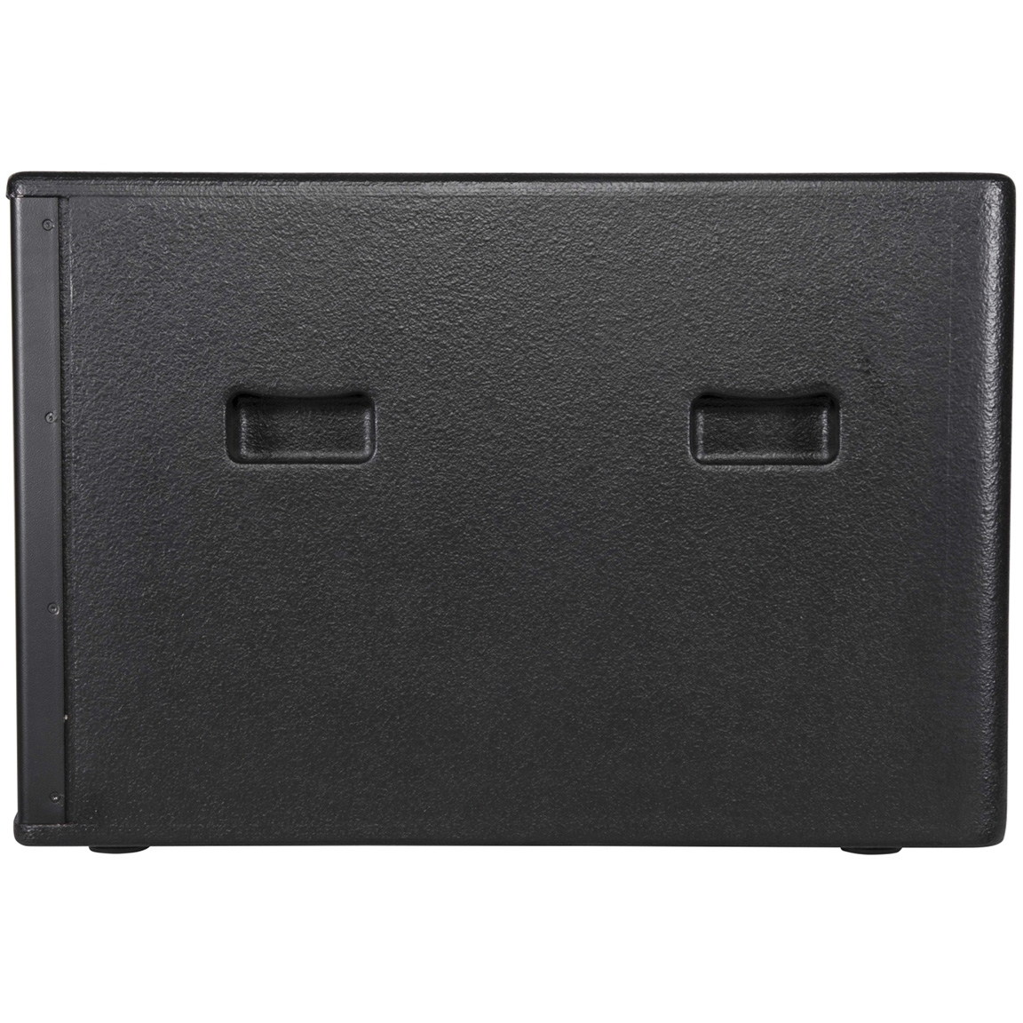 Active subwoofer Axiom SW2100 A black features a 21-inch neodymium low-frequency driver with a 4-inch ISV color voice coil and a moisture-resistant high-rigidity diaphragm. The Class D amplifier with a switching power supply delivers 2000 W of power and incorporates a 40-bit floating-point SHARC DSP for digital signal processing, supporting remote control via PRONET software over CANBUS. Frequency range is 34–180 Hz (±3 dB), maximum sound pressure reaches 132 dB. The enclosure is made of 18 mm birch plywood with a durable finish, equipped with heavy-duty wheels and convenient handles for transport. The top panel includes an aluminum bracket for front mounting AX12C line array elements.