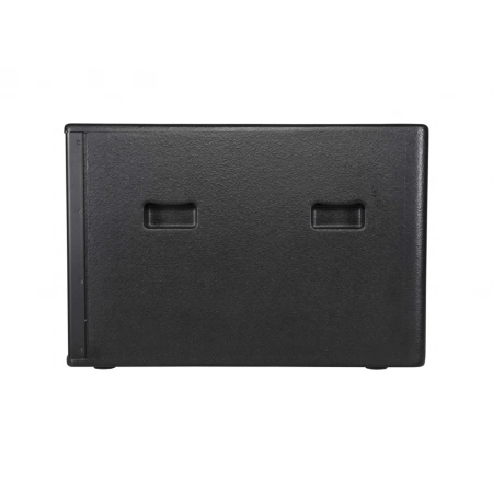 Passive compact subwoofer Axiom SW2100P in black color, equipped with a single 21-inch neodymium low-frequency driver with a 4-inch ISV voice coil, delivering 1600 W nominal power, 3200 W program power, and 7200 W peak power. Frequency range 34–180 Hz (−6 dB), maximum sound pressure level — 132 dB. Enclosure made of 18 mm birch plywood with water-resistant coating, equipped with its own 100 mm diameter wheels and eight handles for convenient transportation. The top panel features an M20 threaded socket for mounting a pole.