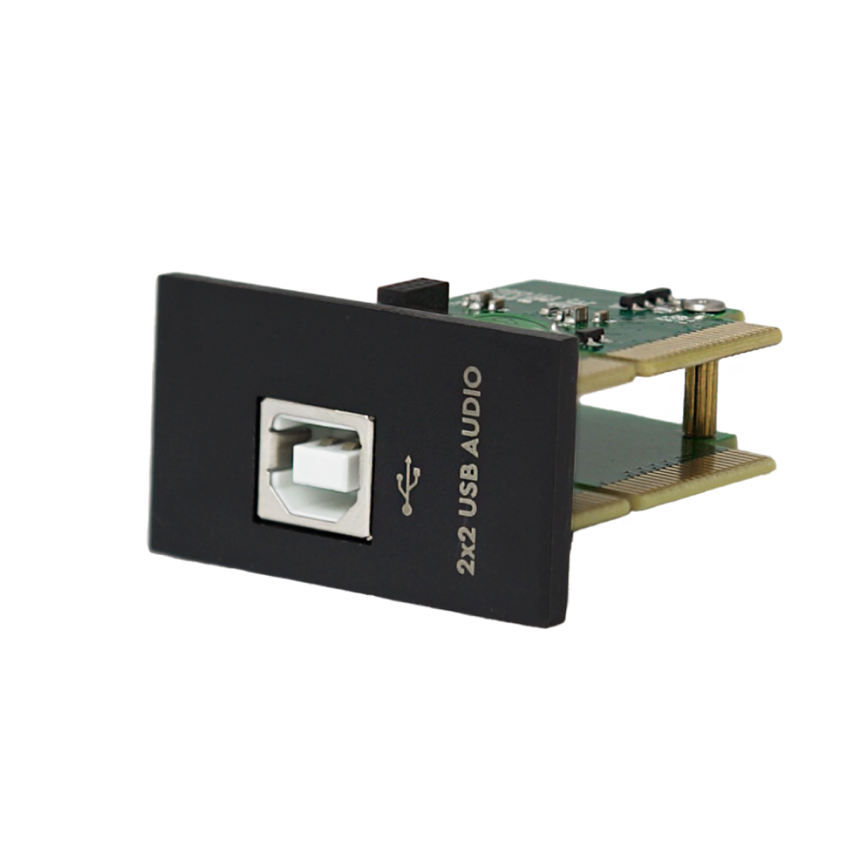 XILICA XC-SUB — expansion card for DSP audio processors of the SOLARO QR1, FR1, and XIO series. Provides 2 inputs and 2 outputs via USB Type B connectors, supports a sampling rate of up to 96 kHz. Configured via Xilica Designer software.